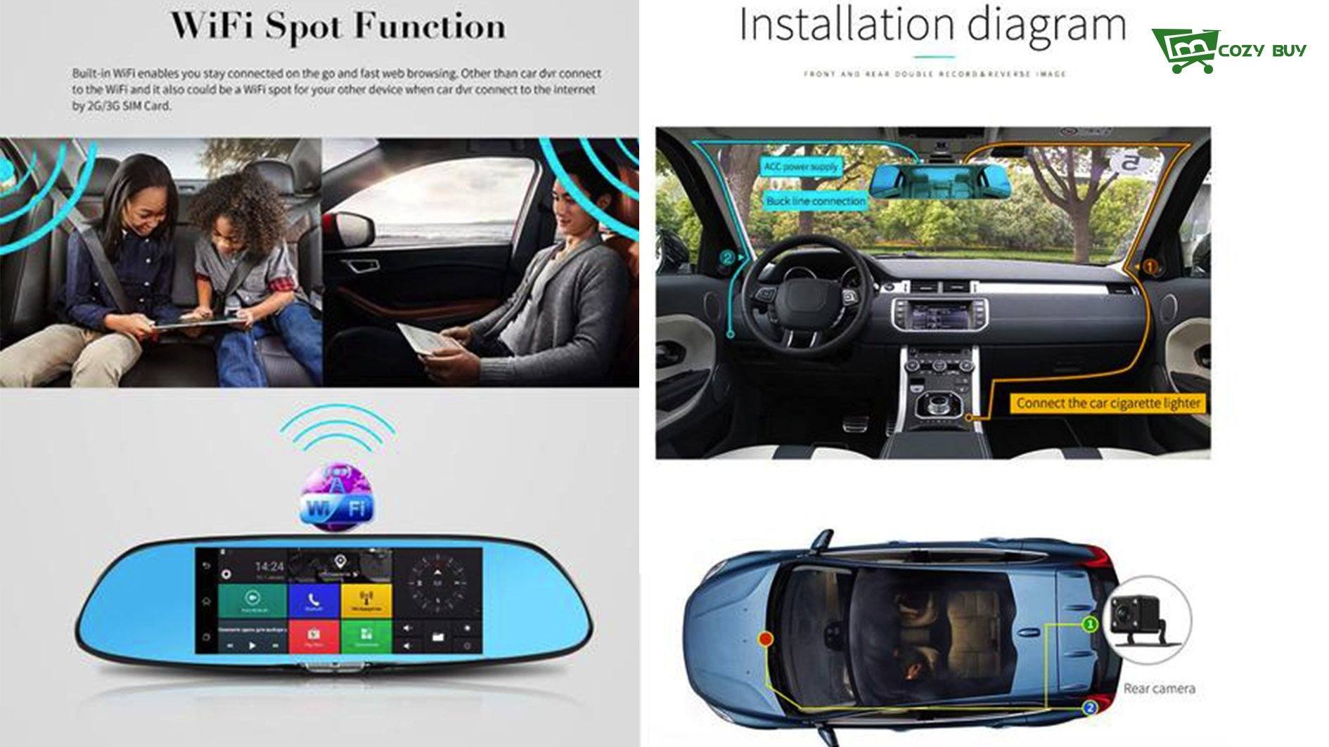 The Car Rear View 7″ Display Replacement Mirror Backup DVR HDCam is a complete safety backup and entertainment system you ever wanted. With Android 5.0, you will get benefits of all the Android features including sim service. The HD mirror cam supports 3G services. So you won’t have any problem which country you live in. With 3G and Wifi, you can enjoy all your favorite content like movies, music and even browsing! The GPS navigation in replacement mirror backup DVR HDcam provides real-time navigation assistant with street view. You can easily monitor your car’s driving path and if anything happened to your car remotely with its unique “Car Assist” mobile app.