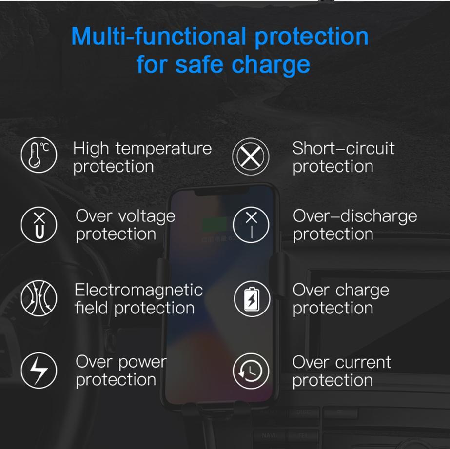 Say goodbye to dangerous driving and tangled cords. Say hello to safer wireless charging – fast! With the built-in infrared sensor, this charger will sense when your phone will automatically open and close for easy use and safe driving. Featuring advanced Qi charging technology and fit with an intelligent gravity holder, our wireless charger was made with one thing in mind: to make your life easier