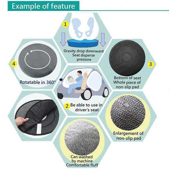 ★ Providing smooth, easy movement in either direction, the swivel cushion rotates a full 360 degrees. Exit or enter any seat without straining your back or hips by twisting and pivoting.