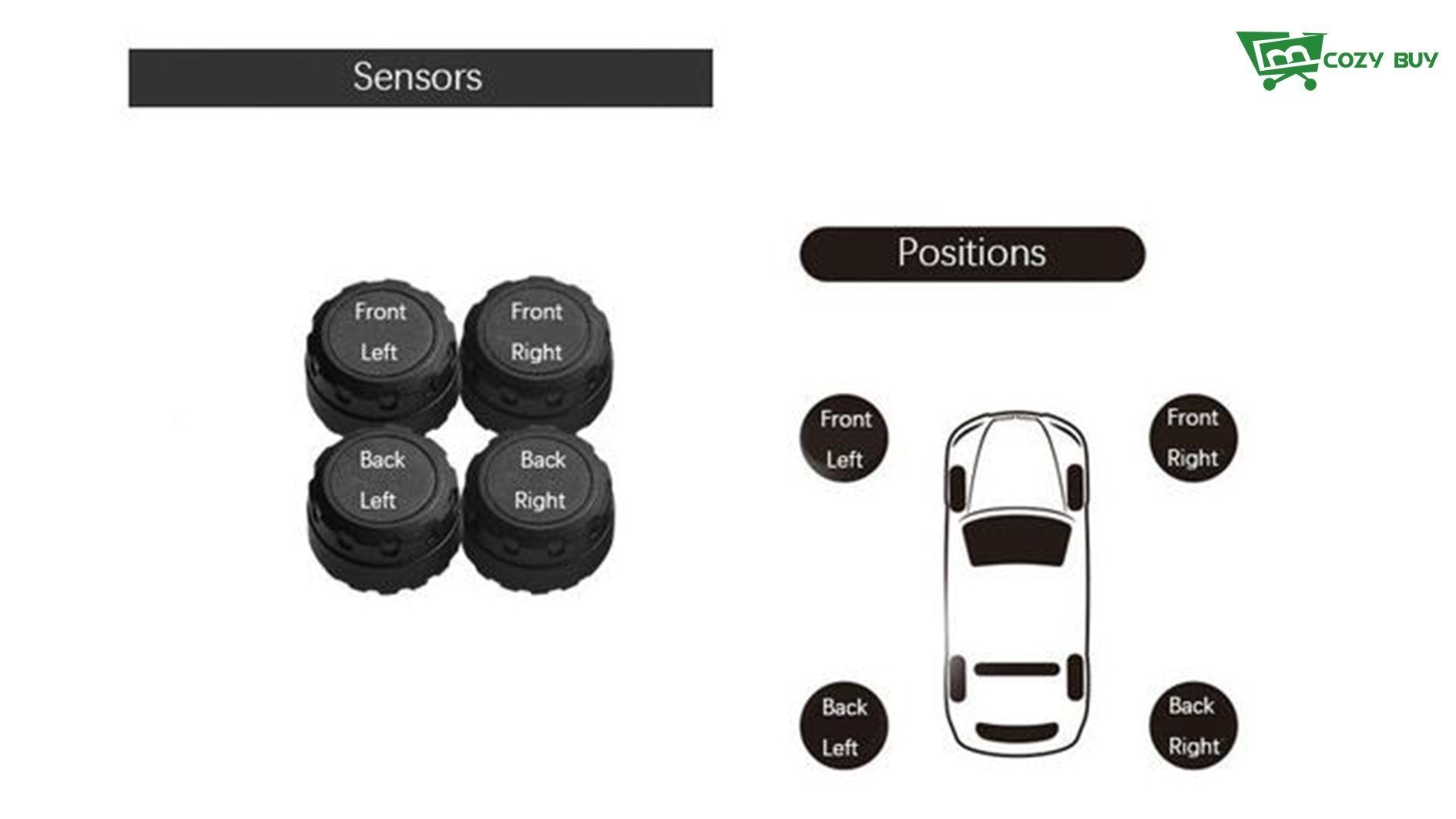 Package Contents: 1 x Tire Pressure Monitoring Gauge, 1 x English Manual, 4 x External Sensor, 1 x Wrench, 4 x Anti-theft Nut, 1 x Charging Cable, 1 x Double Sided Adhesive Tape |