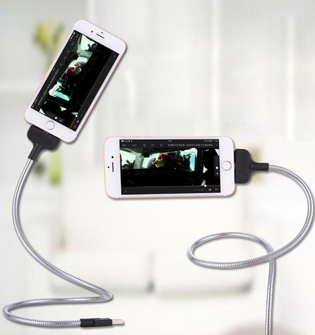 This flexible smartphone dock and charging cable is the ideal must-have tech-accessory! Convenient to use for navigation, travel, commuting, and leisure. Simple to set up and compatible to use between laptops and tablets that need to connect with your smartphone. Handy for your desktop or car. Makes a great gift!