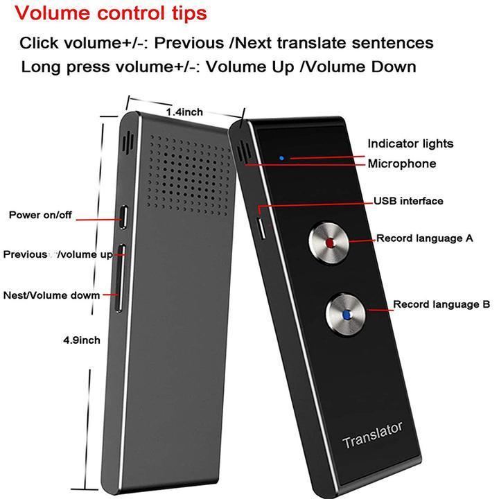 • High sensitivity and fidelity: Push the button on the device and hold it until you finish your speech. The translator will recognize what you said and speak out the translated result.