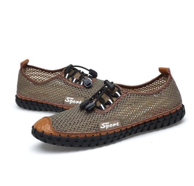 Large Size Men Mesh Fabric Hand Stitching Soft Sole Casual Shoes
