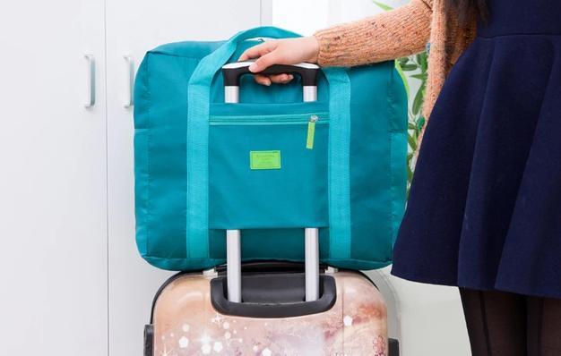 The travel bag has a strap that allows the bag to easily slide over the luggage handle without any hassle and mess in packing. It's a multifunctional carry-on bag that's able to save your travel. You can easily fold it neatly in its portable size when not in use.