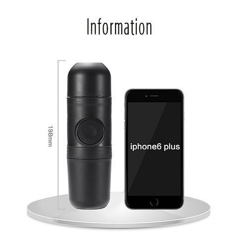 This model of the Portable Coffee Maker is designed specifically to function with Nespresso pods and produce a 45ml shot. It is powered by a semi-automatic piston that protrudes from the device. Simply pump it over a short period of time to produce 8 bars of espresso, a shot of espresso just like what a commercial espresso machine would make. No electricity or CO2 is needed to power the device!