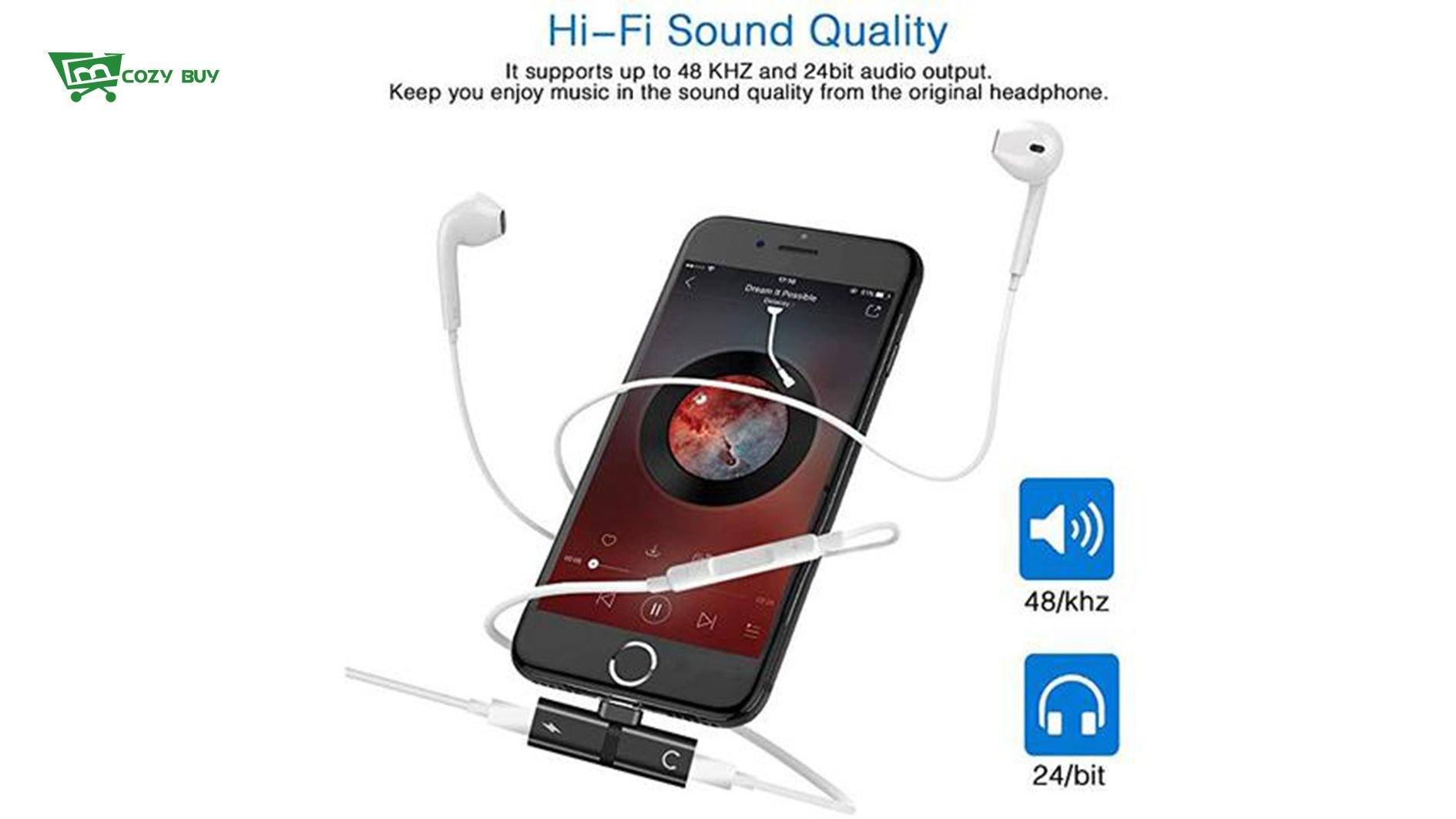 - Supports up to 48 KHz and 24-bit audio output, keep Apple Lightning EarPods sound quality with no compromise.