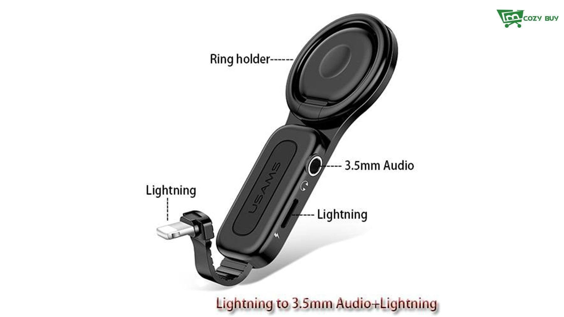 2-in-1 Fast Charging Lightning Adapter WITH Ring Phone Holder