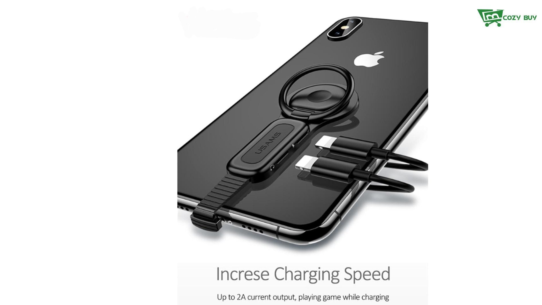 • Lets you charge your phone and listen to music without bending cables, thus preventing damages