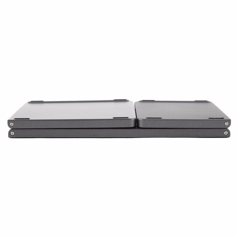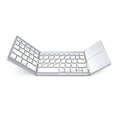 Foldable Bluetooth Keyboard is a revolutionary step forward in Bluetooth keyboard technology, specifically designed for people on the move. Compact, versatile, and lightweight, it folds on two innovative hinges that double as grips to keep your board steady, while the grips on each end keep it from sliding around.