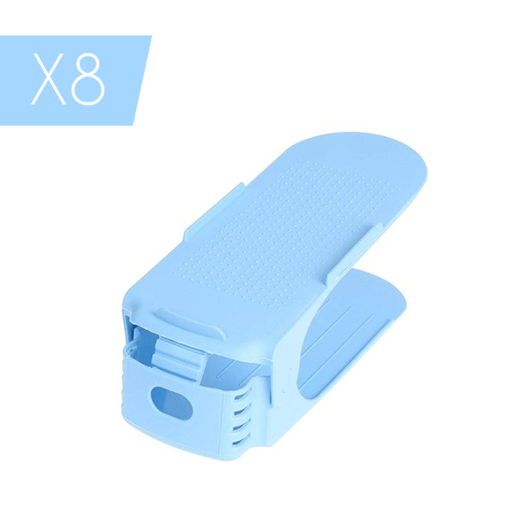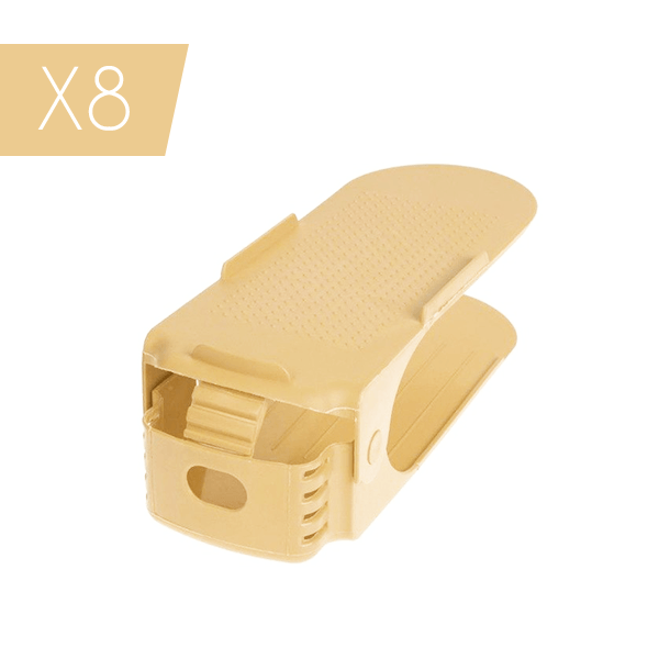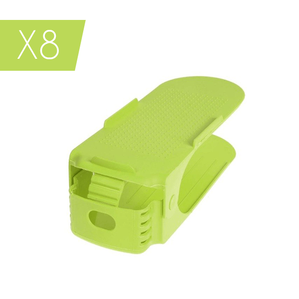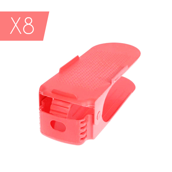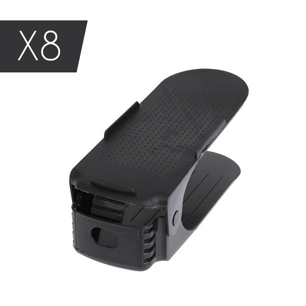 Get double storage capacity instantly for up to eight shoe pair with these slots. Best possible space saving solution for your shoes in the bedroom, closet, and wardrobe. Stack all your shoes with this modern and fun design.